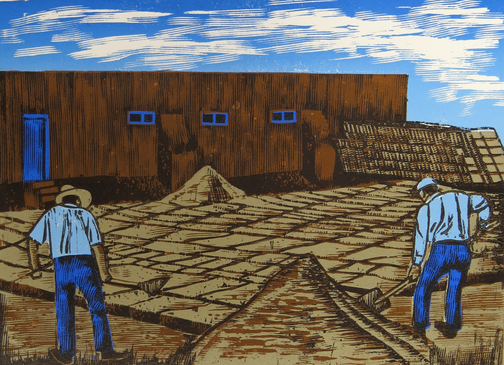 Making Adobes, 2006; woodcut; image: 206×280 mm