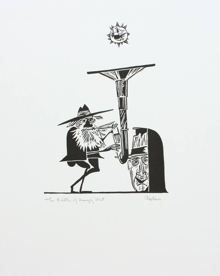 Walter Askin (born 1929); The Birth of Krazy Kat, circa 1999; linocut; image: 15 x 11 inches