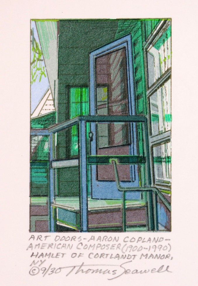 Art Doors – Aaron Copland – American composer (1900-1990) Hamlet of Cortlandt Manor, NY, 2007; screen print; 3 1/3 x 2 1/4 inches