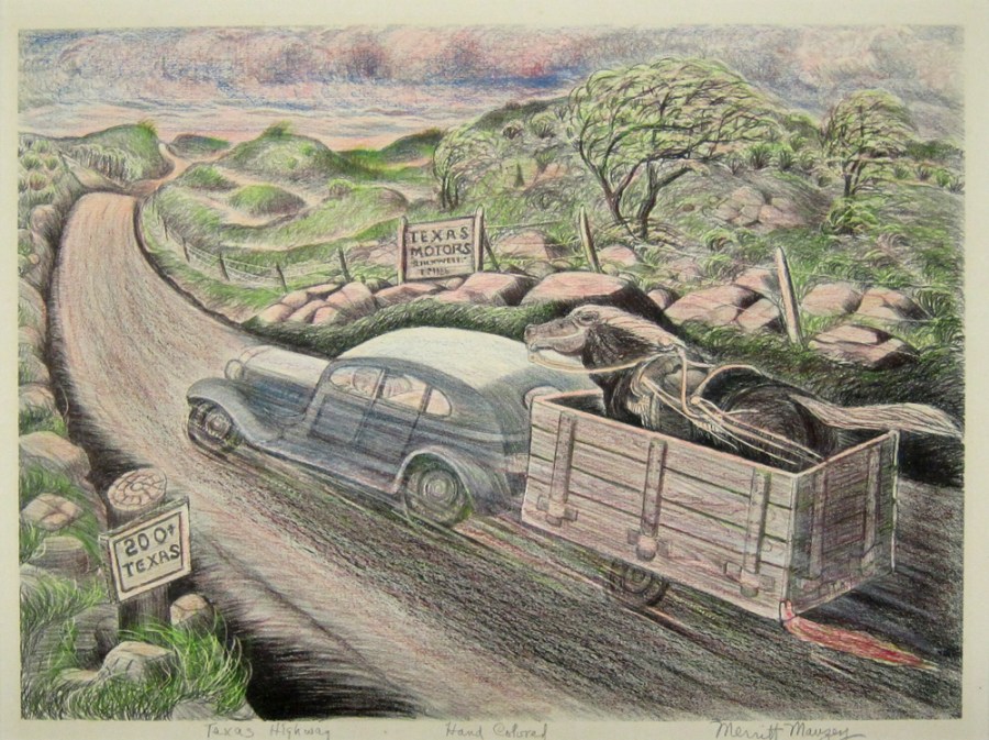 Texas Highway, date unknown; Lithograph, colored graphite; Image: 10 x 14 inches