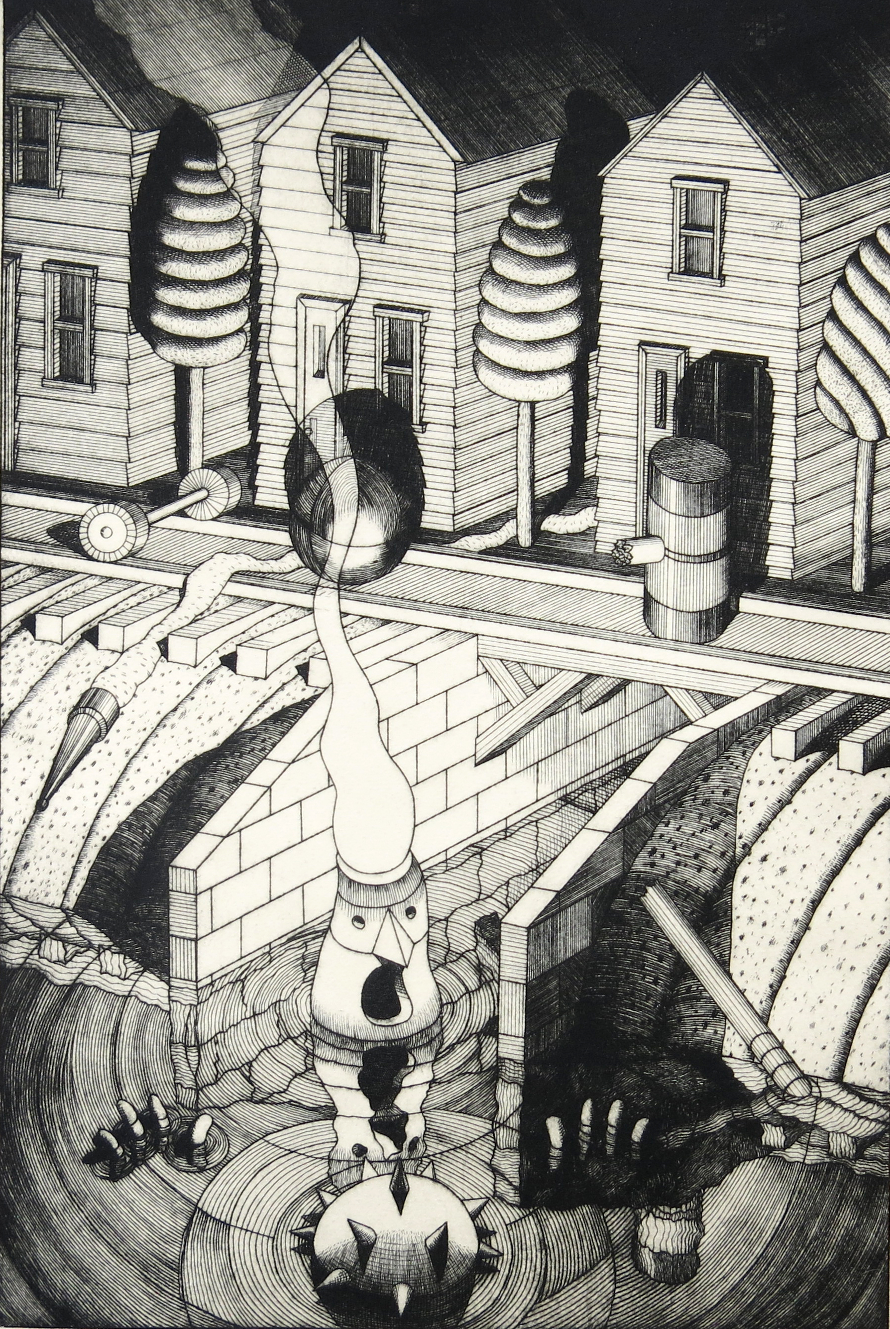 Night Watchman (state one) 1996; Drypoint; Image:335mm x 223mm
