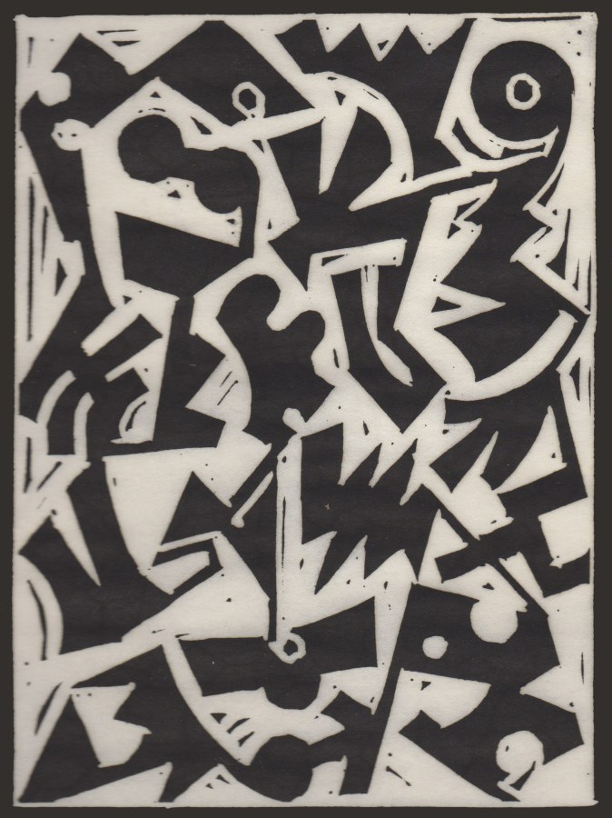 Don R. Schol; XXIX, from Arrangements; linocut; 7 7/8×6 inches