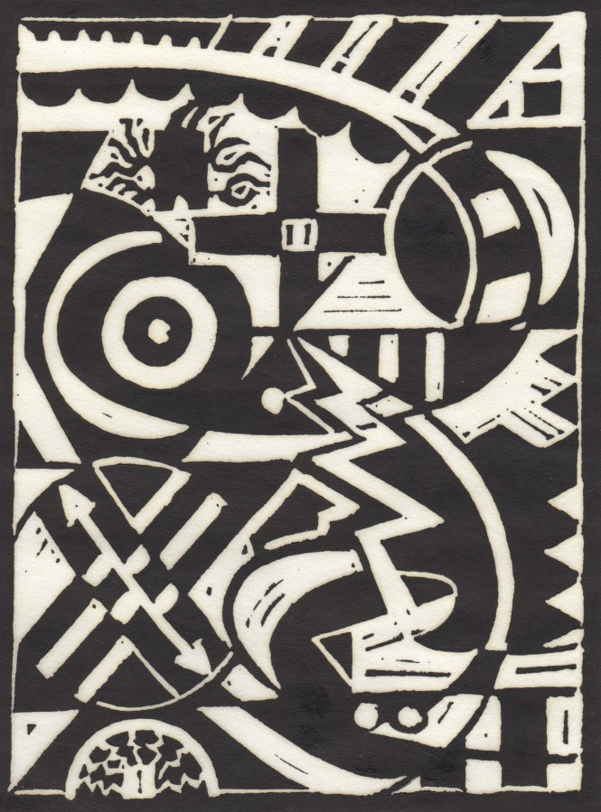 Don R. Schol; XXV, from Arrangements; linocut; 7 7/8×6 inches