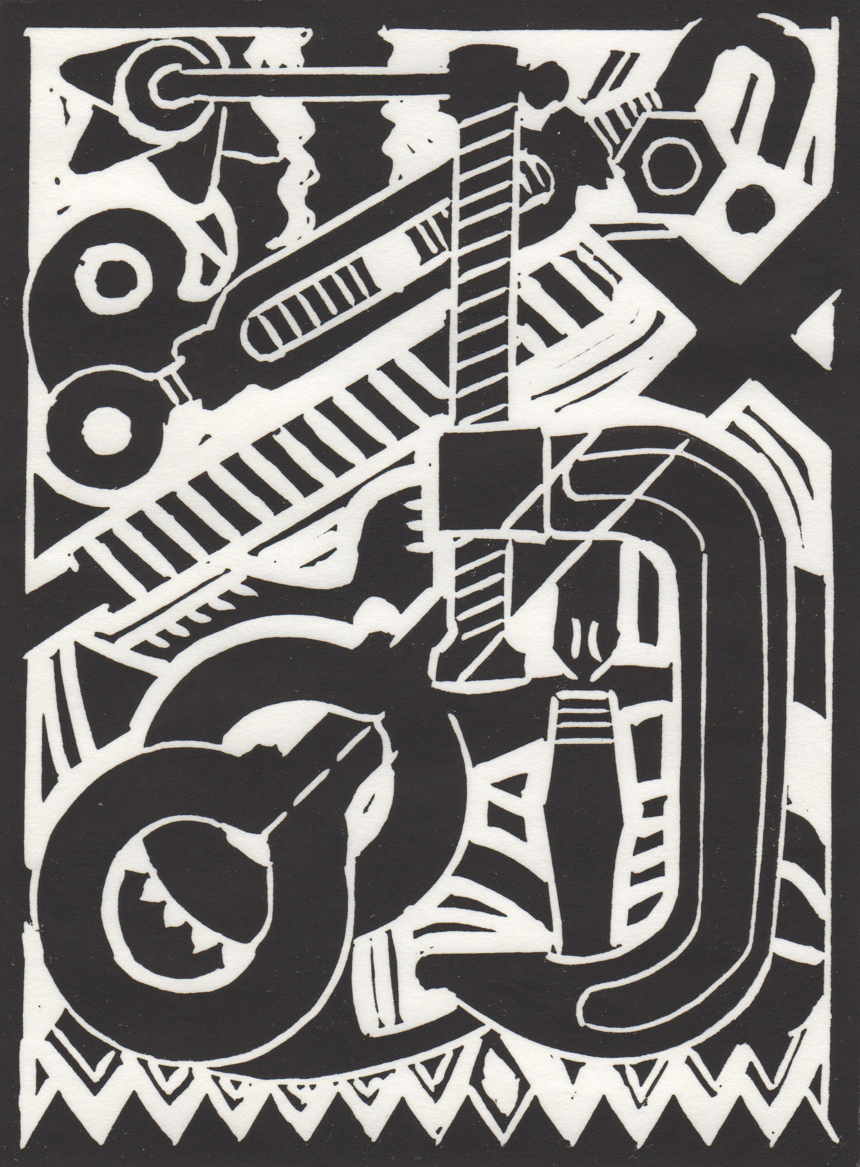Don R. Schol; XXVII, from Arrangements; linocut; 7 7/8×6 inches