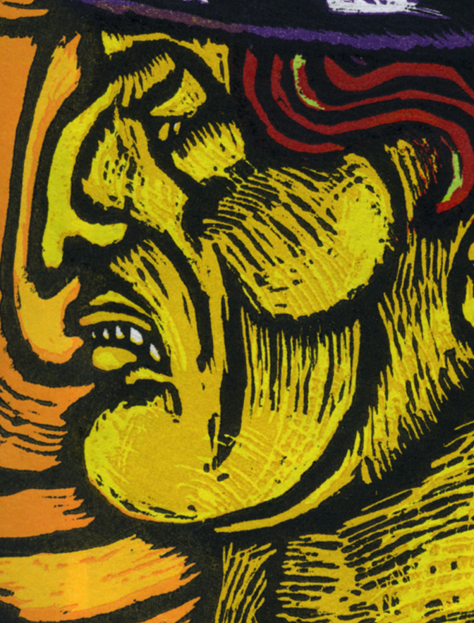 Outcast detail 2; Woodcut