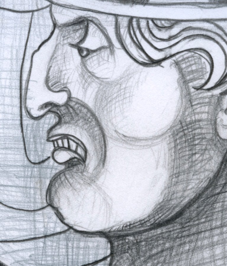 Outcast drawing detail 2; Woodcut