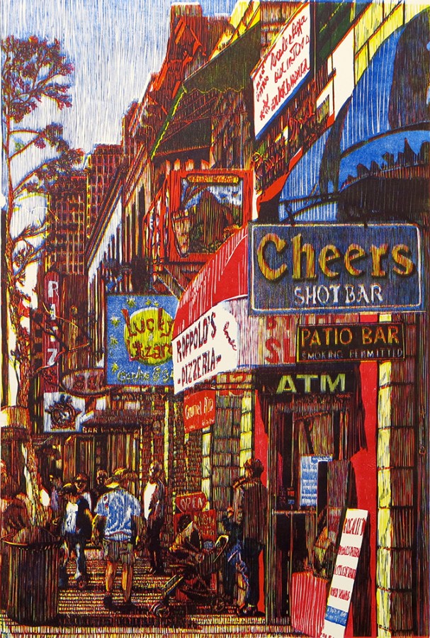 E. 6th Street (Graphic Chemical Process Blue), 2014; Woodcut; Image: 36 x 24 inches