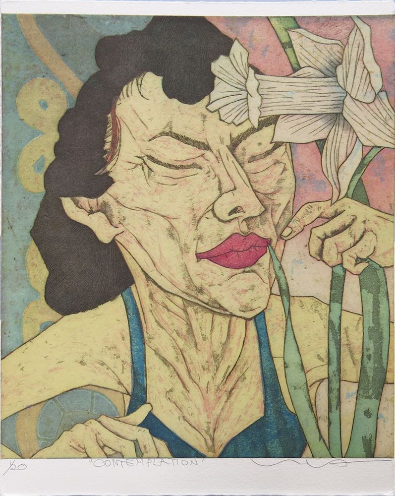 Etching, chine collé;