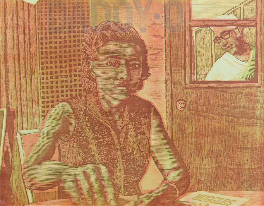 Pressure print, letterpress, reduction woodcut;