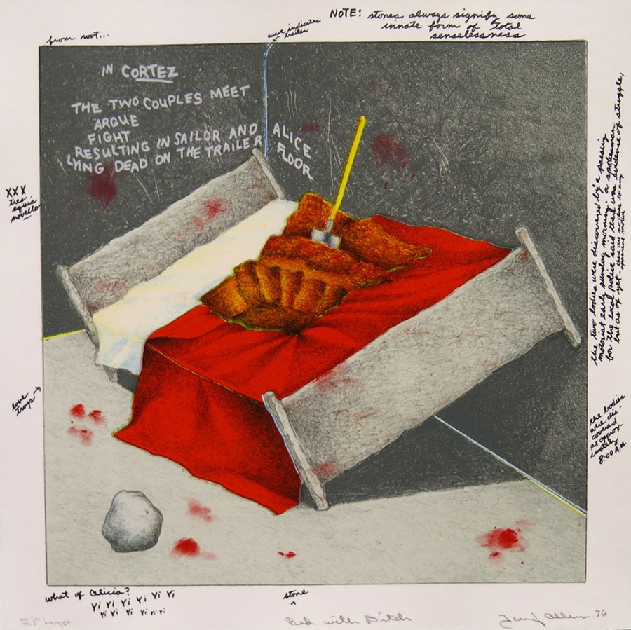 Bed with Ditch, from Juarez, 1976; lithograph; image and paper: 320×320 mm