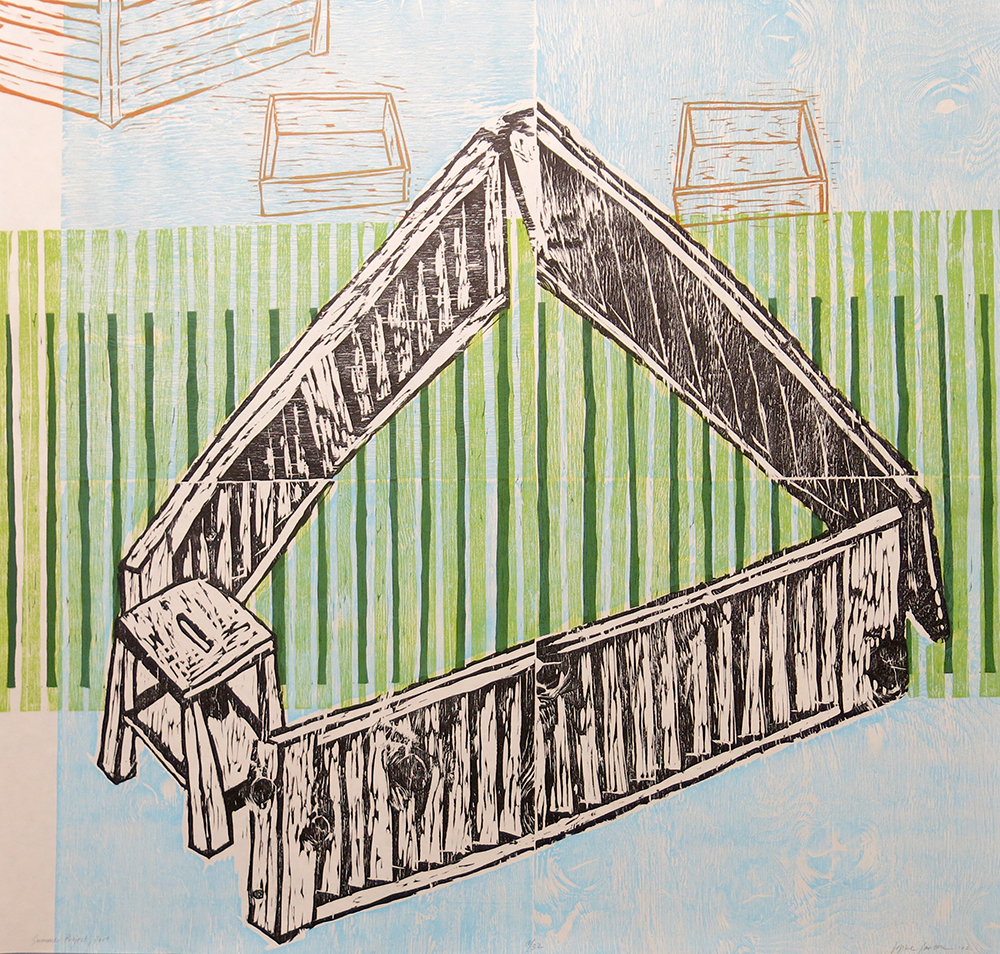 Summer Project, Fort, 2002; Woodcut; Object size: 902 x 965 mm