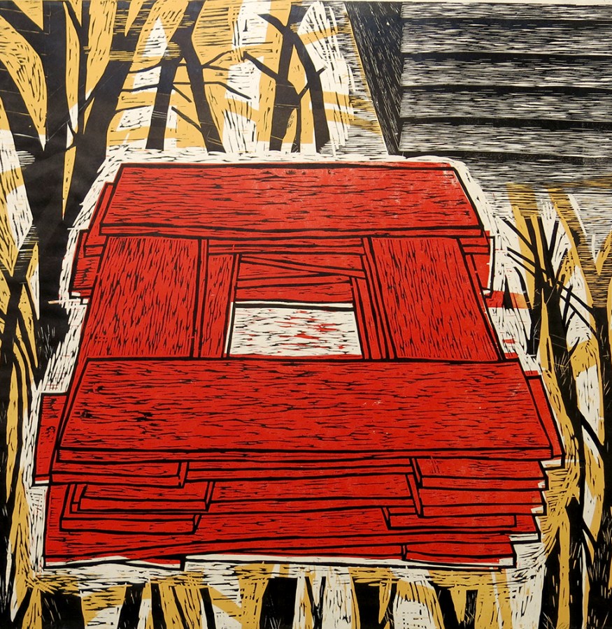 Stack (yellow), 2004; Woodcut; Object size 962 x 967 mm