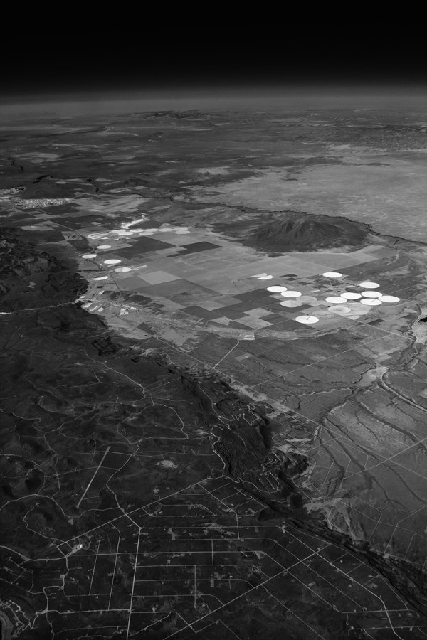 Lined Escarpment and Circles (SLC>DFW>LBB), 2012-15, pigment print; infrared sensor digital camera