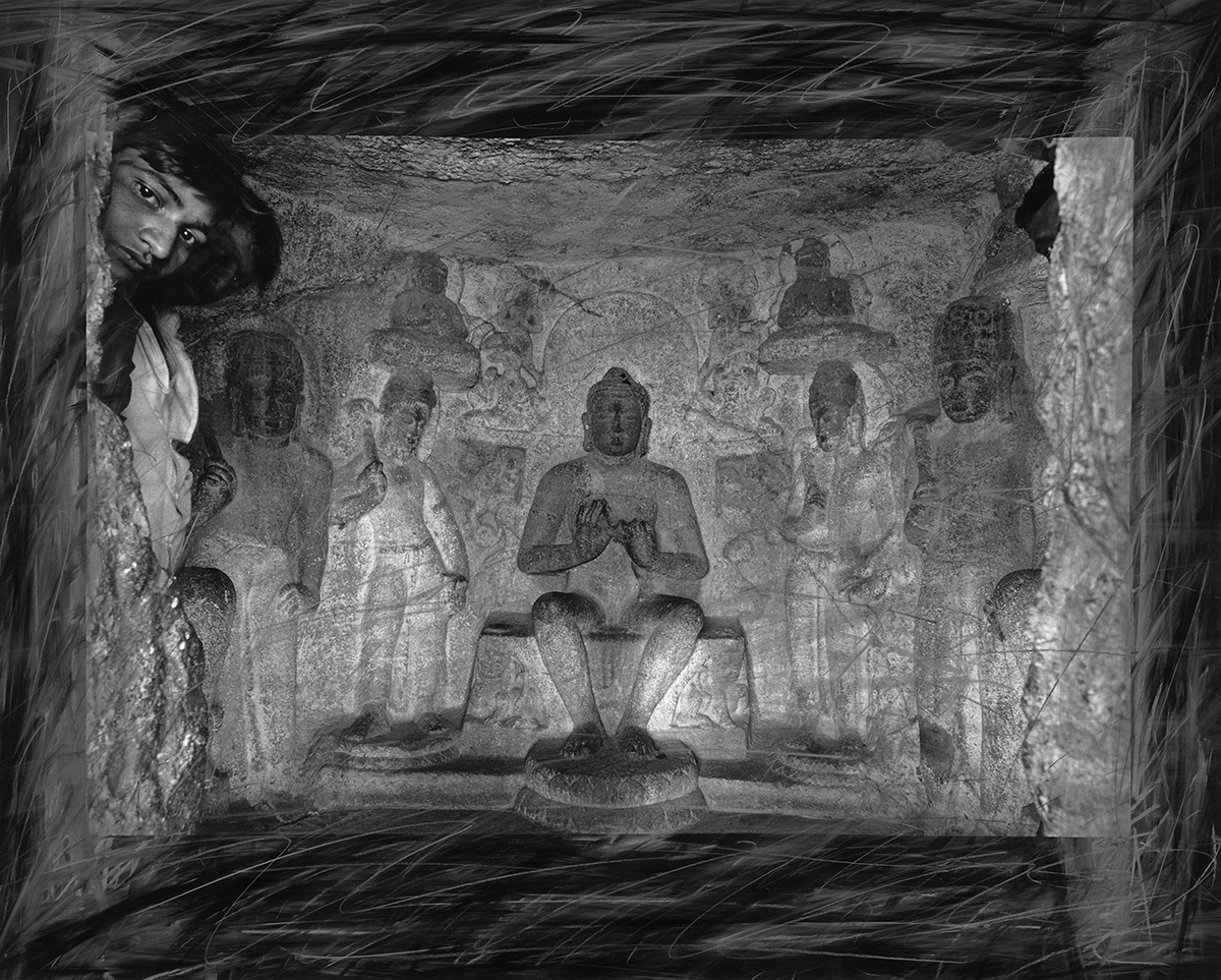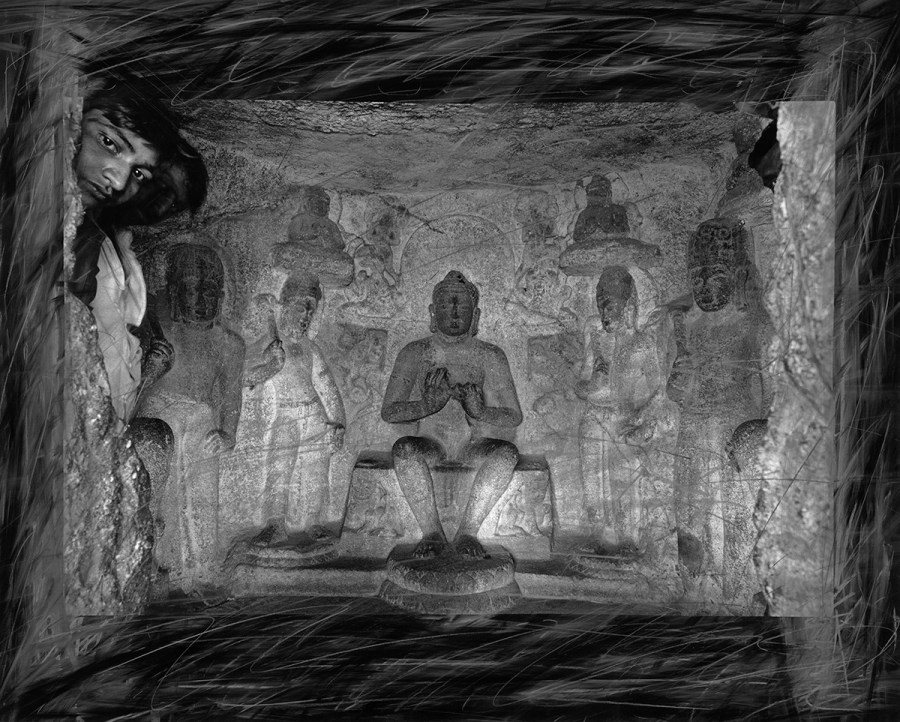 Buddha with Onlookers, Pandu Lena Caves near Nasik, Maharashtra, India, 1988-90; silver gelatin print with graphite