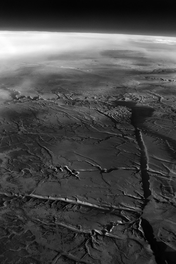 Straight Line Over Fractured Ground (OAK>LAS>LBB), 2014-15, pigment print; infrared sensor digital camera