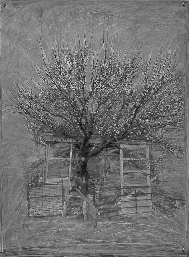 Tree of Knowledge, Turkey, TX, 1988-89; silver gelatin print with graphite