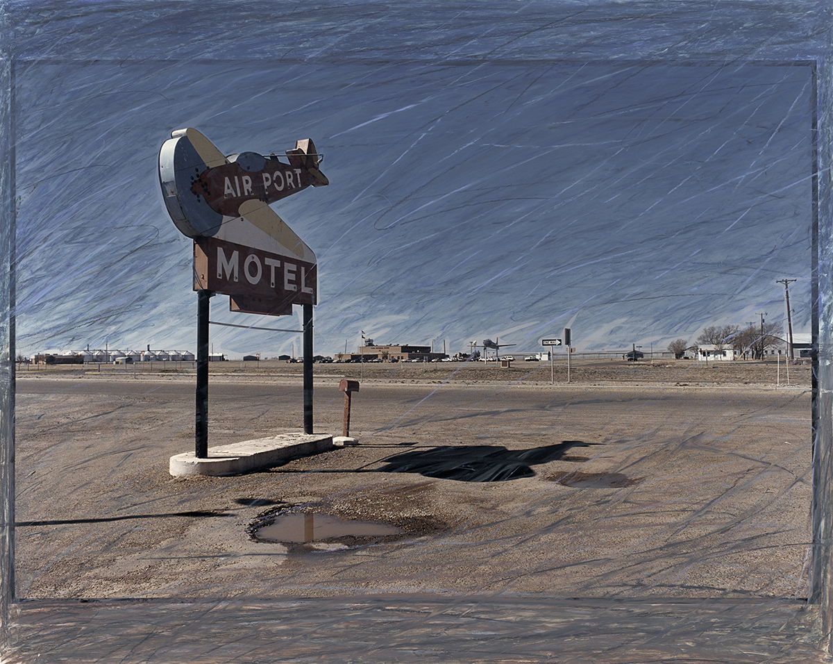 Airport Motel, Plainview, TX, 1992; chromogenic print with water-soluble wax and oil based pastel crayons