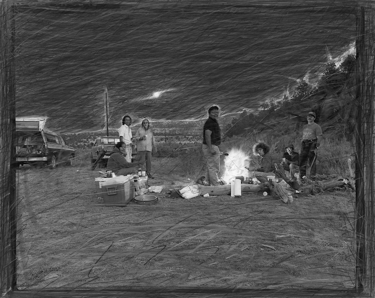 Lessons by the Campfire, 1987-88; silver gelatin print with graphite