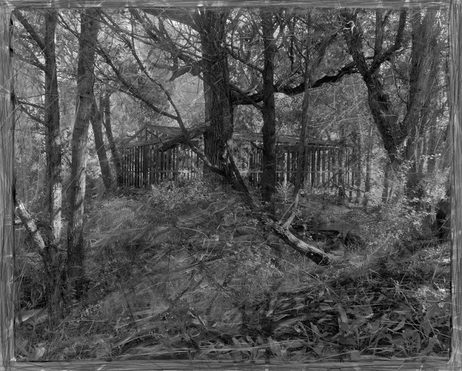 Ufinsihed House in the Woods near Taos, NM, 1985-88; silver gelatin print with graphite