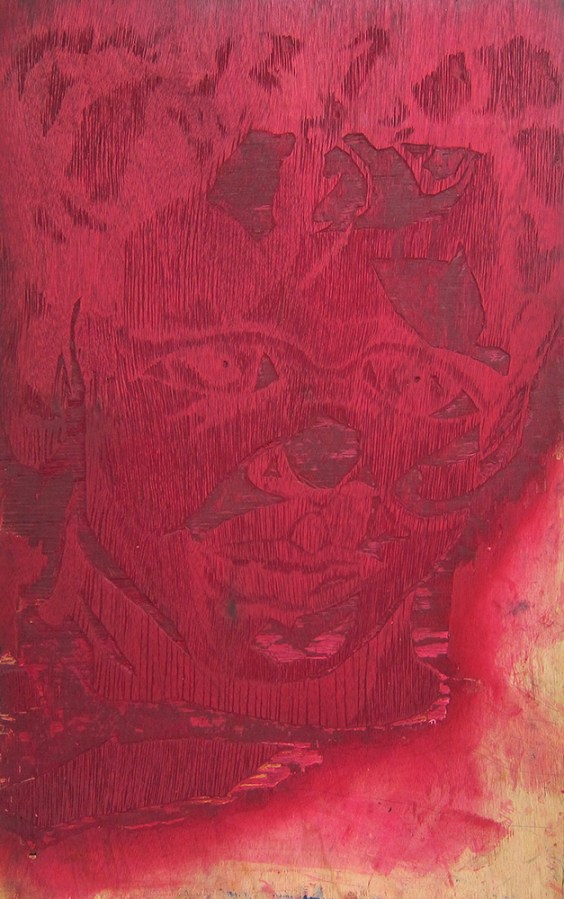 Barret in Three Color, 1992; Woodcut matrix; Image size: 964 x 610 mm