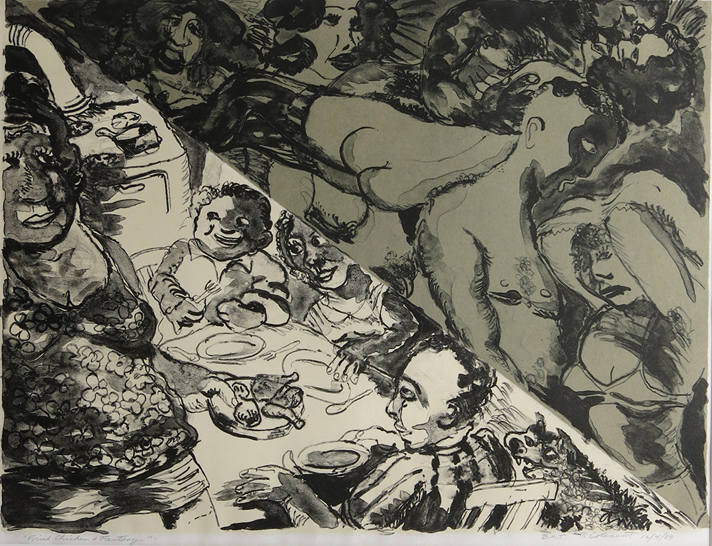 Robert Colescott; Fried Chicken & Fantasy, 1990; lithograph (480x633mm)