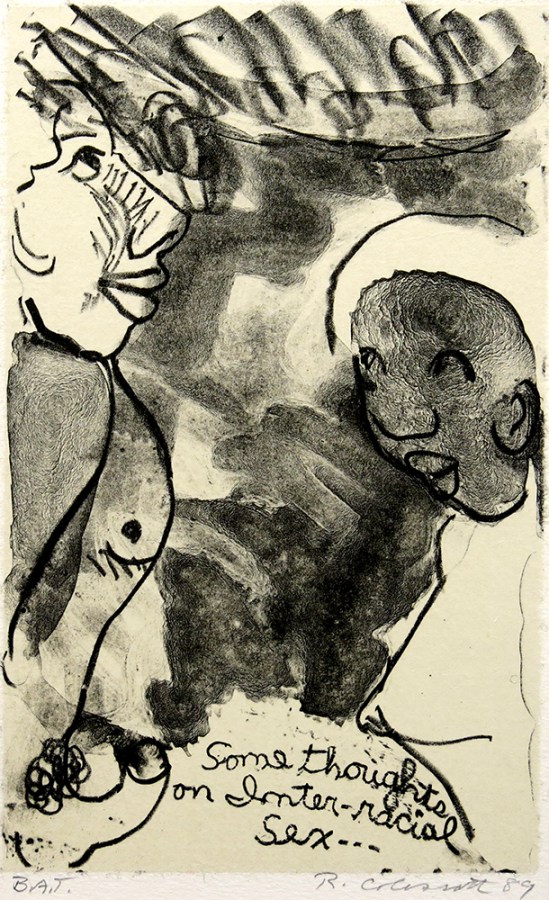 Robert Colescott; Some Thoughts on Interracial Sex, 1990; lithograph (240x150mm)