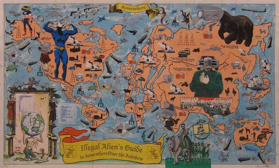 Enrique Chagoya, Illegal Alien’s Guide to Somewhere Over the Rainbow, 2010; lithograph 629×1035 mm)