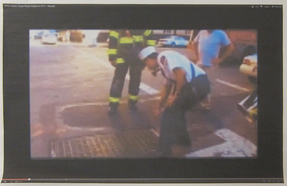 Andrew Super; screenshot of a video of the World Trade Center attack, 2013; inkjet