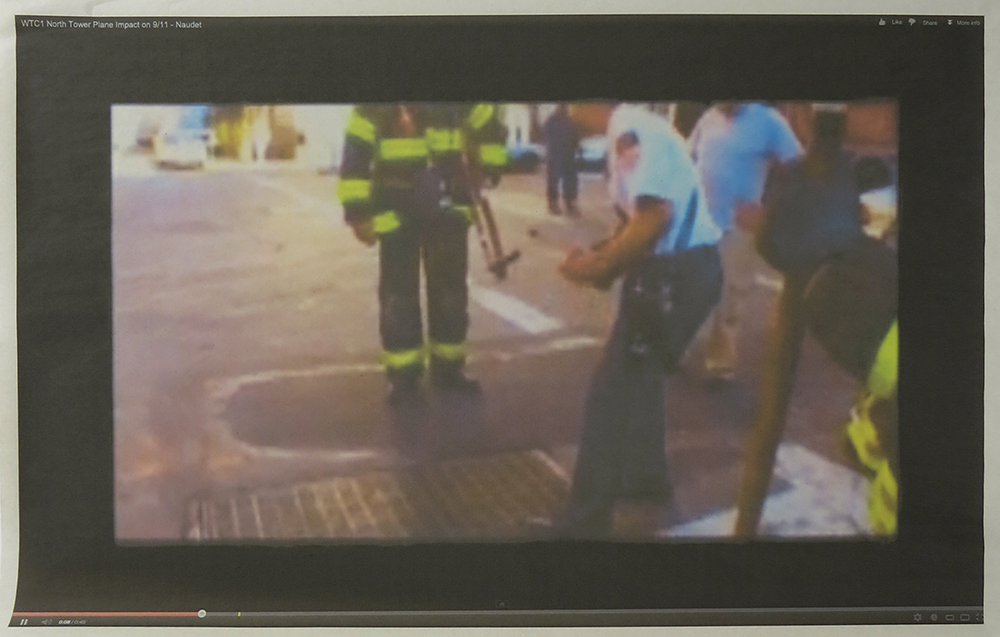 Andrew Super; screenshot of a video of the World Trade Center attack, 2013; inkjet