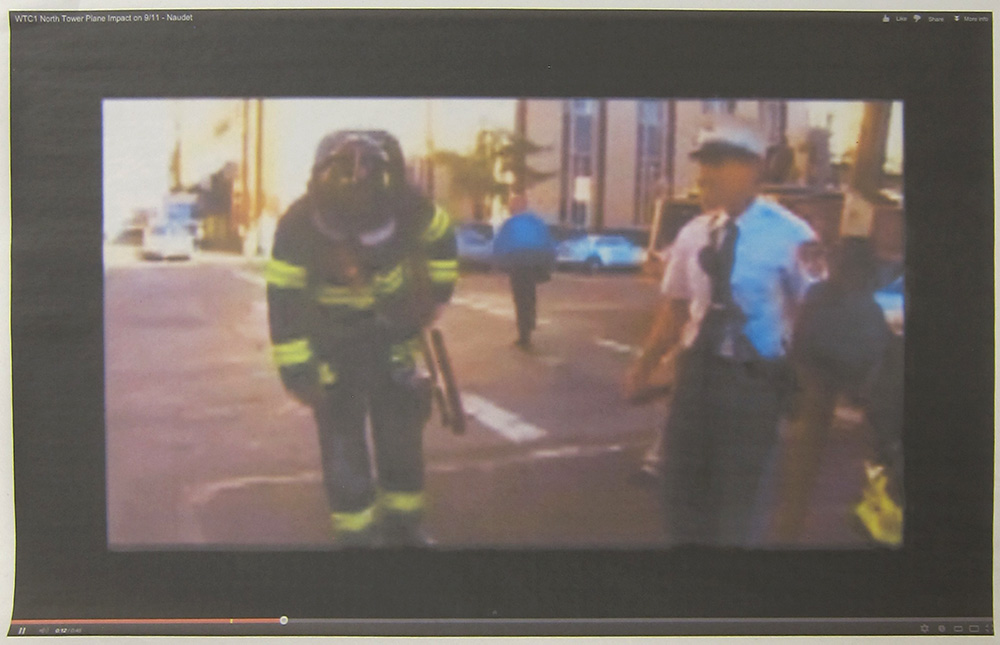 Andrew Super; screenshot of a video of the World Trade Center attack, 2013; inkjet