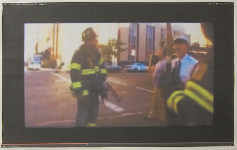 Andrew Super; screenshot of a video of the World Trade Center attack, 2013; inkjet