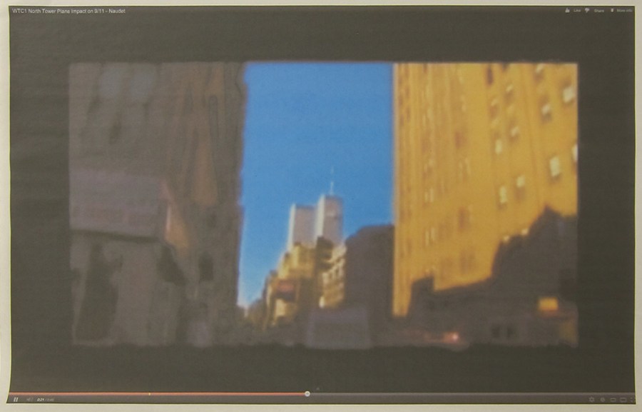 Andrew Super; screenshot of a video of the World Trade Center attack, 2013; inkjet
