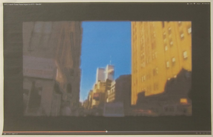 Andrew Super; screenshot of a video of the World Trade Center attack, 2013; inkjet
