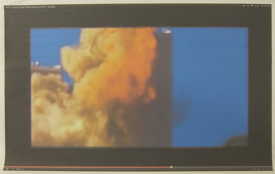 Andrew Super; screenshot of a video of the World Trade Center attack, 2013; inkjet