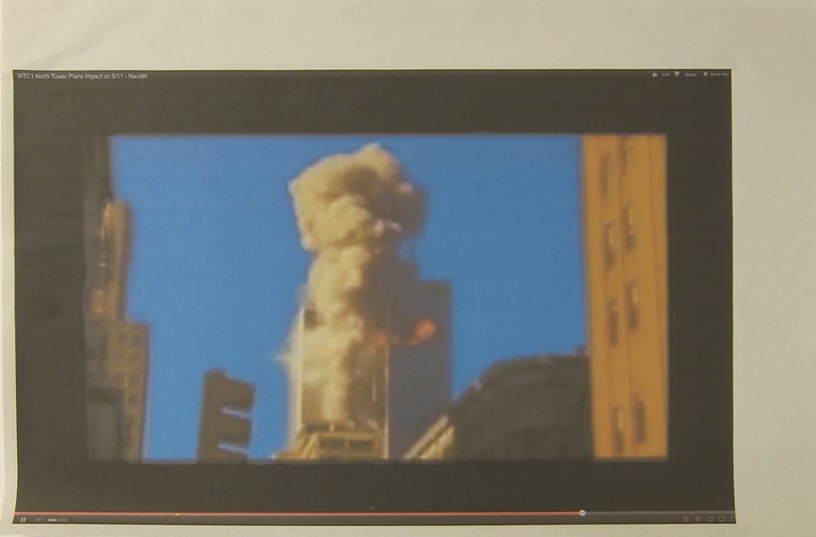 Andrew Super; screenshot of a video of the World Trade Center attack, 2013; inkjet
