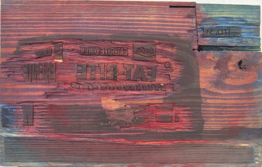 Anthony Lazorko (1935-2017); Eat-Rite, 2003; wood matrix, ink (285X455)