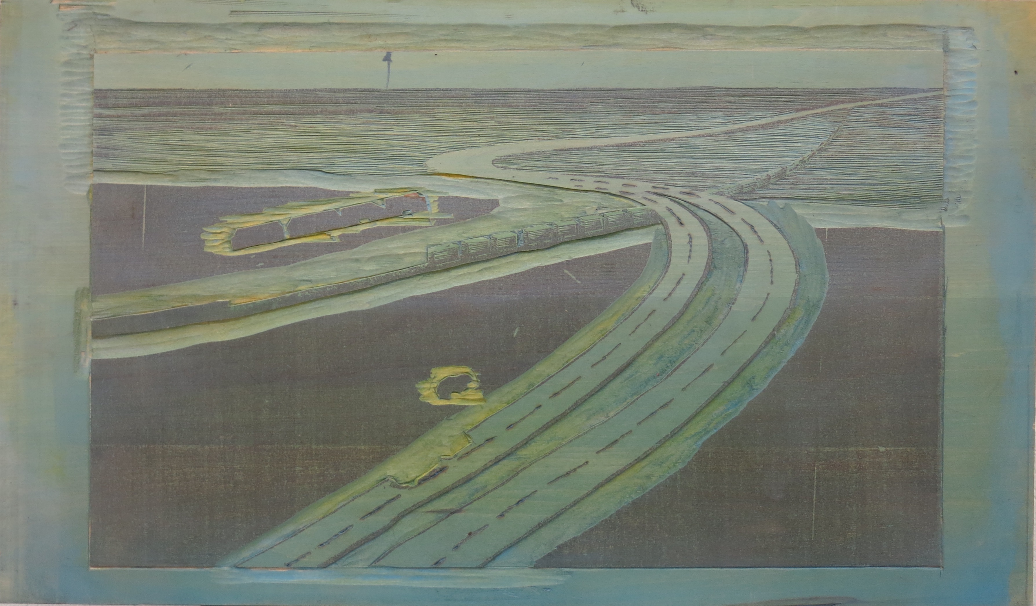 Anthony Lazorko, (1935-2017); Crossroads; wood matrix, ink (392x686mm)