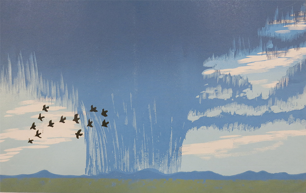 Anthony Lazorko (1935-2017); Here Comes the Rain, 2007; woodcut (278x480mm)