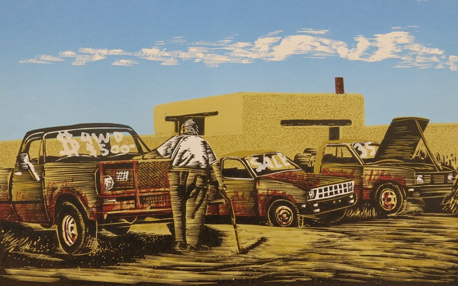 Anthony Lazorko (1935-2017); Clunkers, 2011; woodcut (394x595mm)