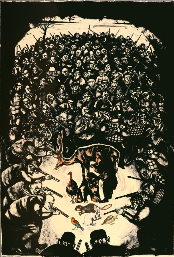 Sue Coe, The Unspeakable Pursuing the Uneatable, 1994; lithograph (1130x762mm)