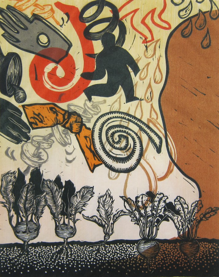 Judy Youngblood; Same Above and Below, 1994; linocut (326×259 mm)