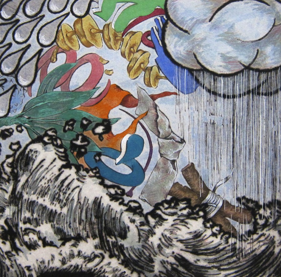 Judy Youngblood; Storm, 1996; drypoint, engraving, hand coloring (224×226 mm)