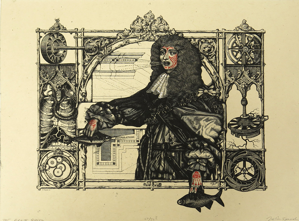 Julie Speed; The Pirate Queen, 2011; etching, polymer plate, hand coloring (305×401 mm)