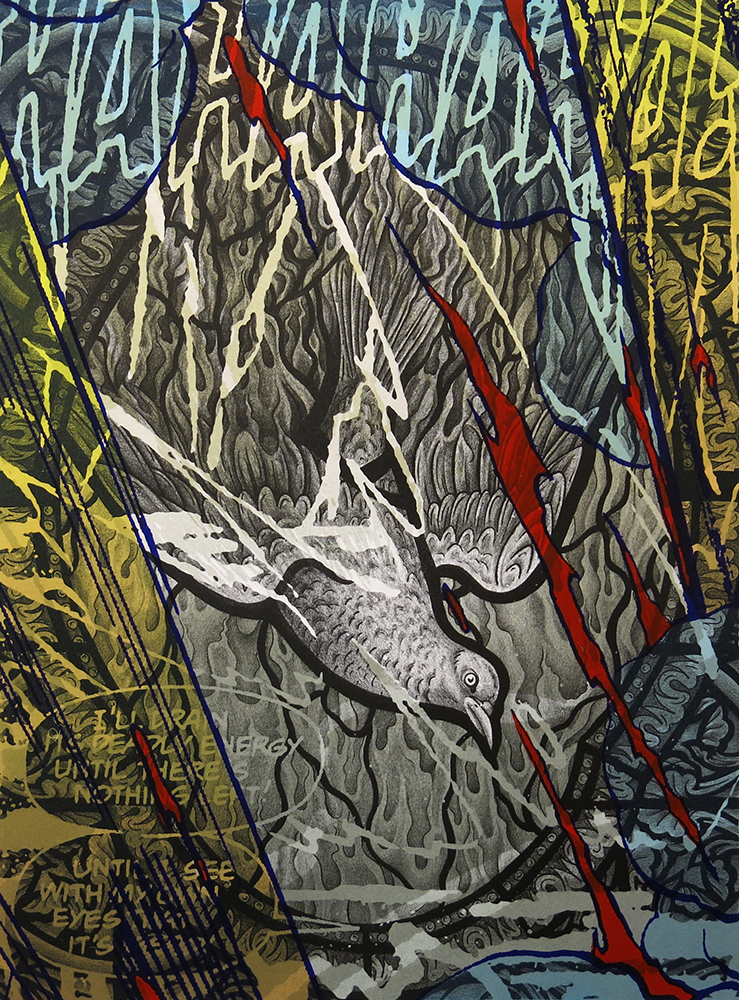 Survivor of the Great American Autoclave, 2015; lithograph and screen print (410x306mm)