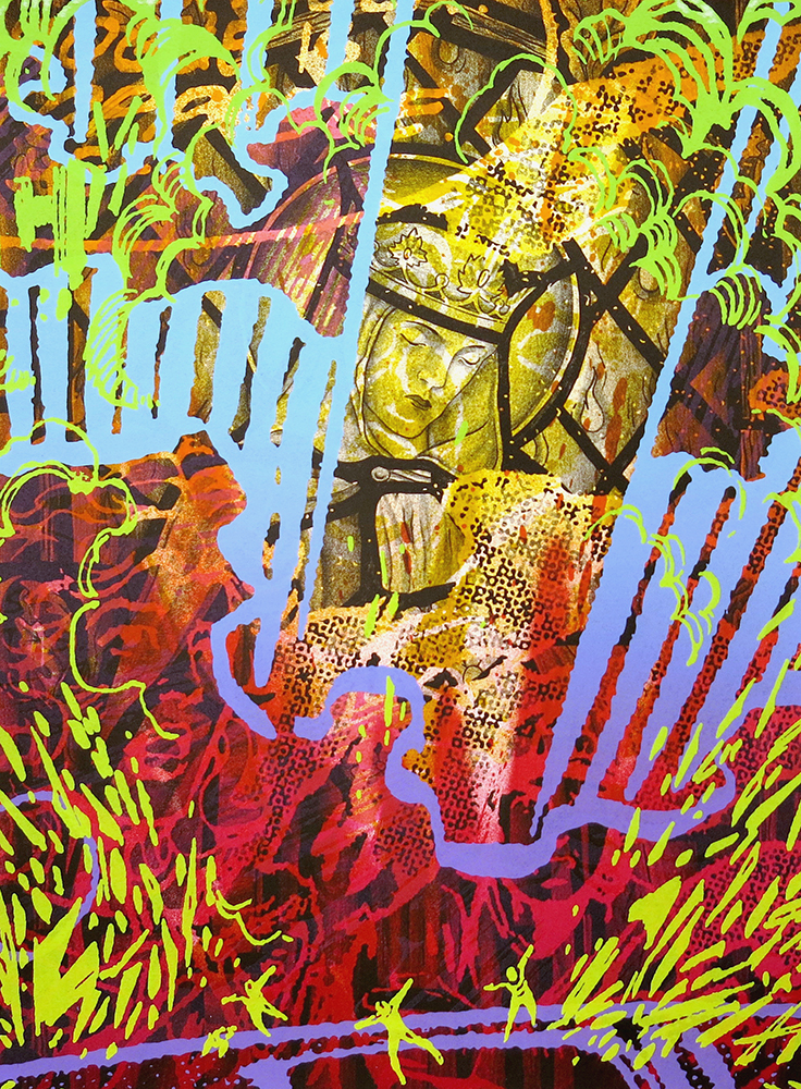 Crowned Upon the Ashen Sun, 2015; lithograph and screen print (409x308mm)