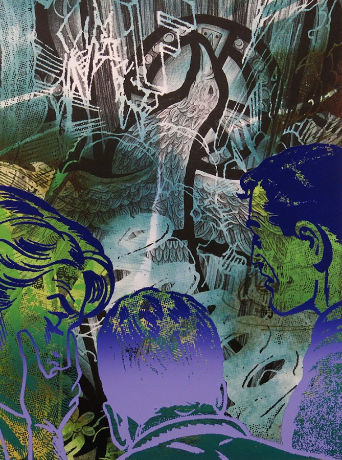 Flown to the Silent Void; lithograph and screen print (409x304mm)