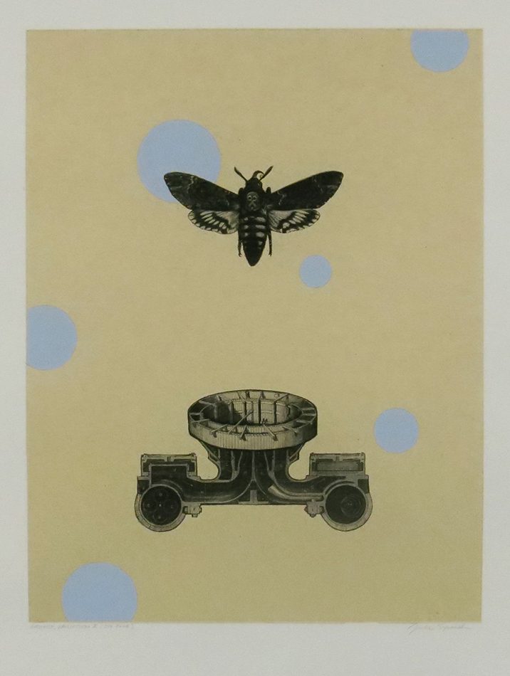 Julie Speed; Launch II, 2011; polymer plate etching with chine colle and hand coloring (463×354 mm)