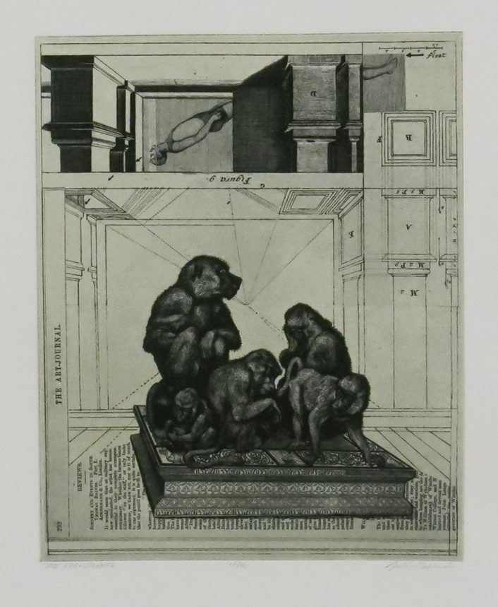 Julie Speed; The Cognoscenti, 2011; polymer plate etching with chine colle (280×227 mm)
