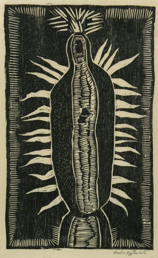Virgin de Guadalupe, 2017; woodcut on Kitakata paper