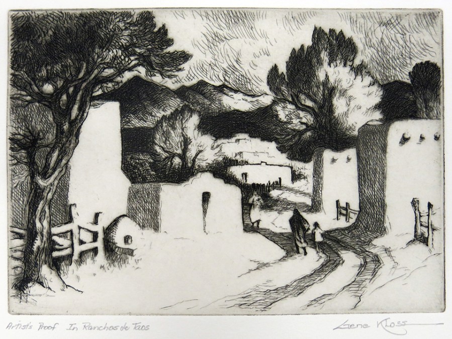 Gene Kloss; In Ranchos de Taos, 1973; etching and drypoint (145×200 mm)